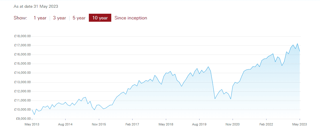 A £10,000 investment made a decade ago would now be worth over £16,000 as a result of reinvested dividends.