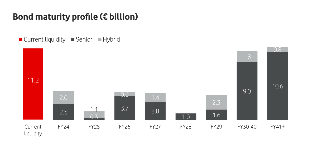 As such, it’s fair to suggest that Vodafone will benefit from interest rates falling over the coming 24 months. This could mean lower debt repayments and the ability to issue debt with lower coupon rates.