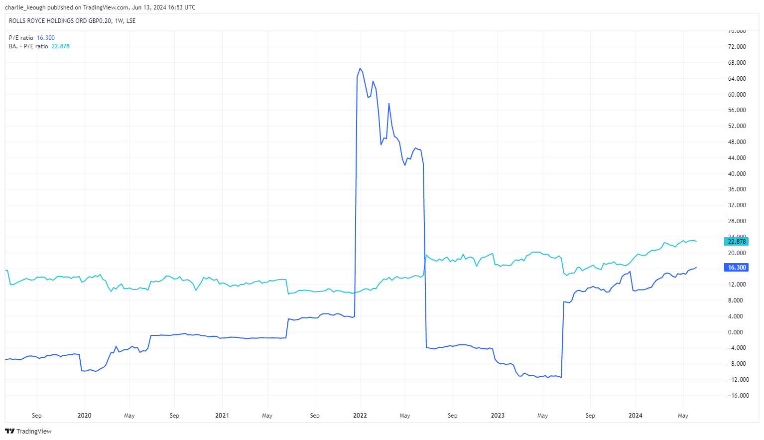 As seen below, Rolls currently trades on a P/E of 16.3. That’s above the Footsie average of 11 and based on that, Rolls looks expensive. That said, it’s considerably cheaper than its Footsie peer BAE Systems, which trades on 22.9 times earnings.